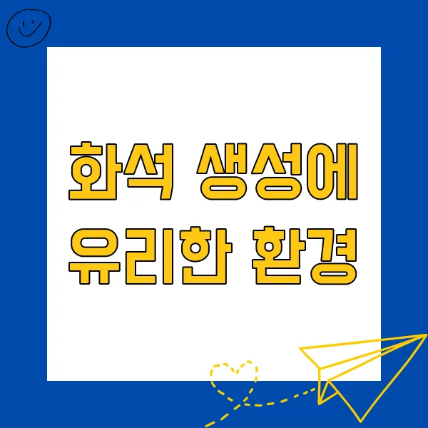 - 퇴적 환경: 입자가 고운 퇴적물이 쌓이는 환경(호수, 늪, 해저 등)은 화석 보존에 유리합니다.